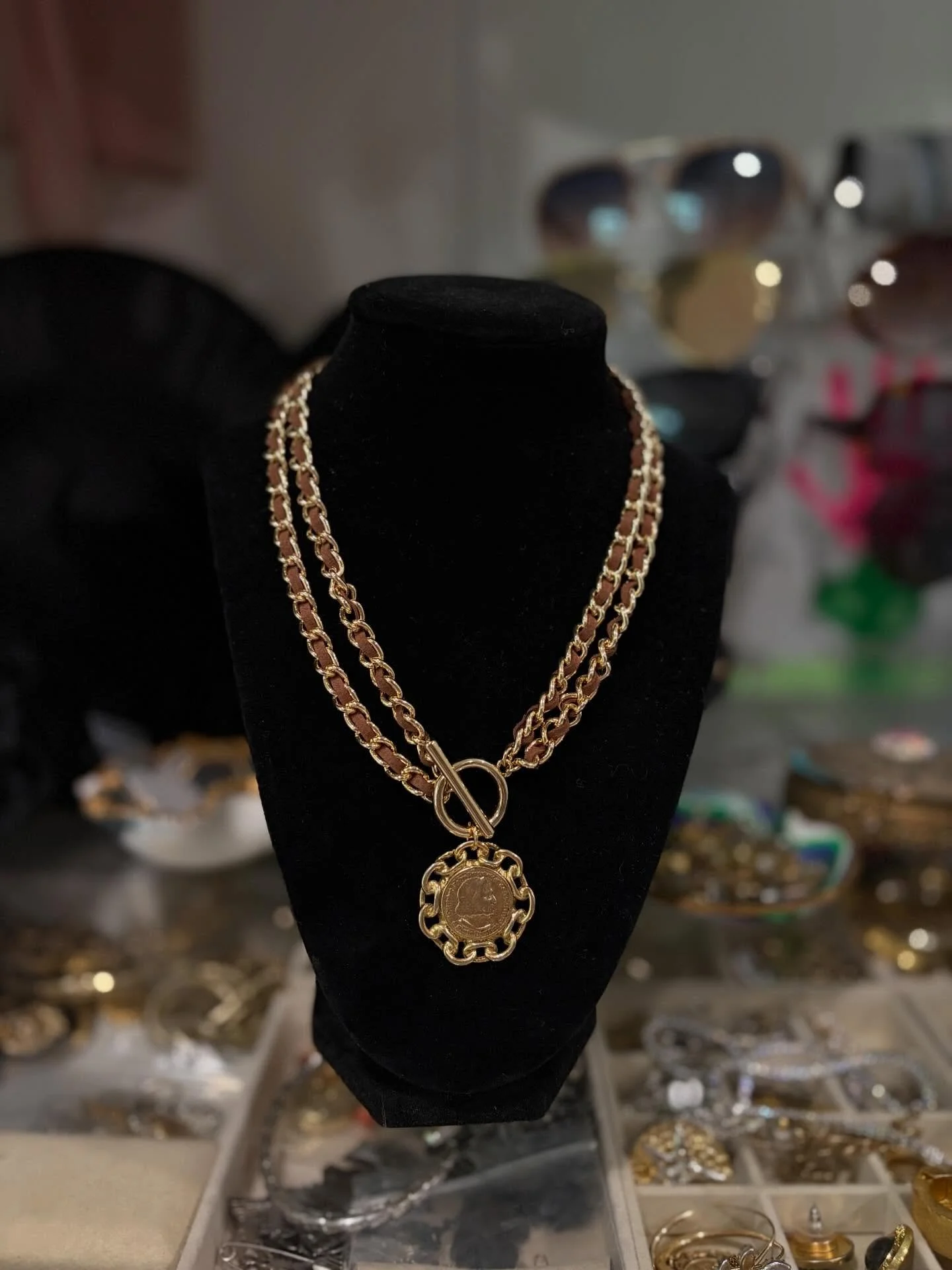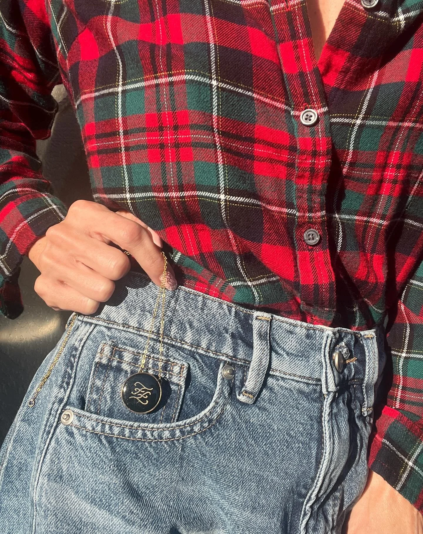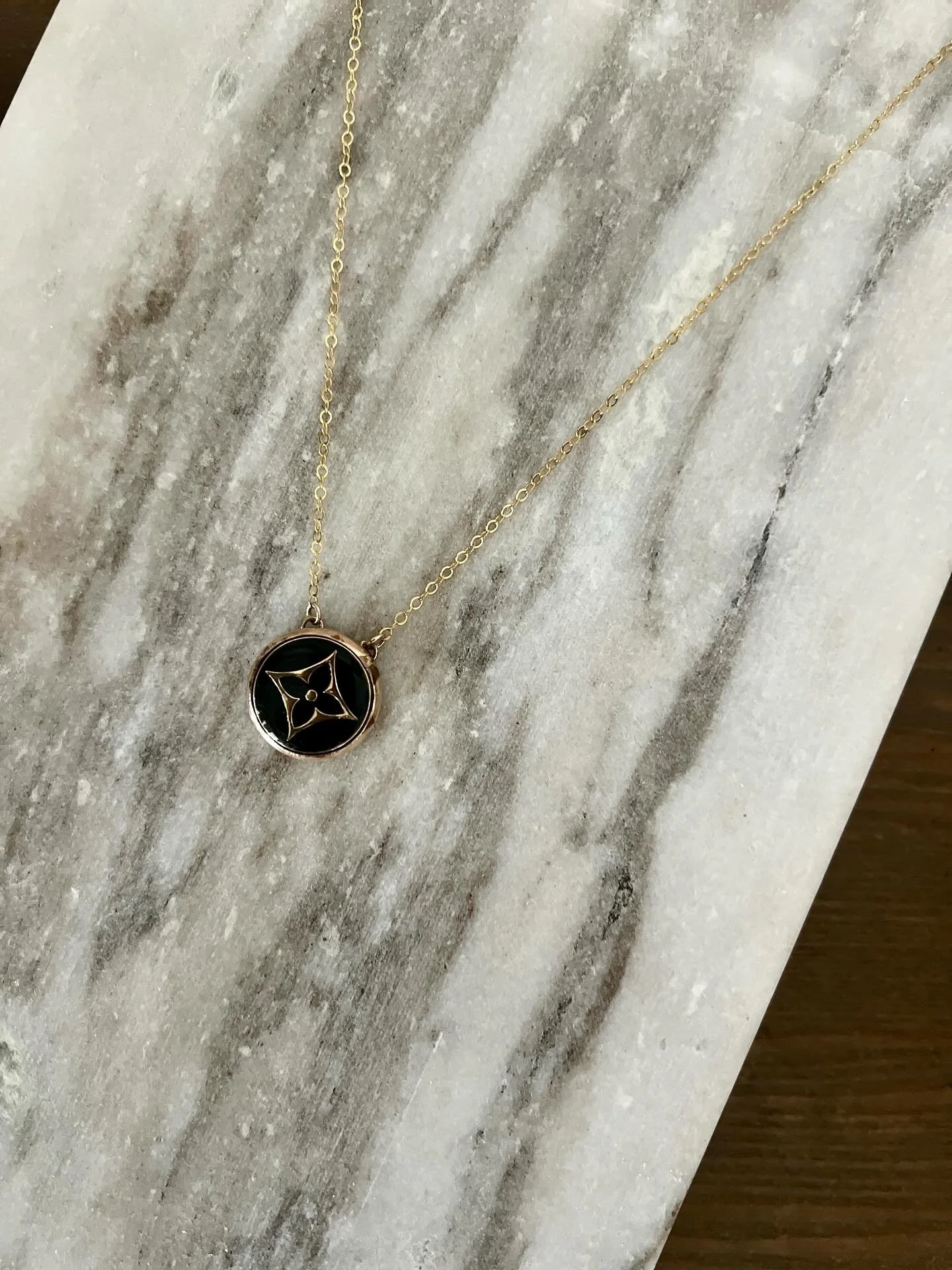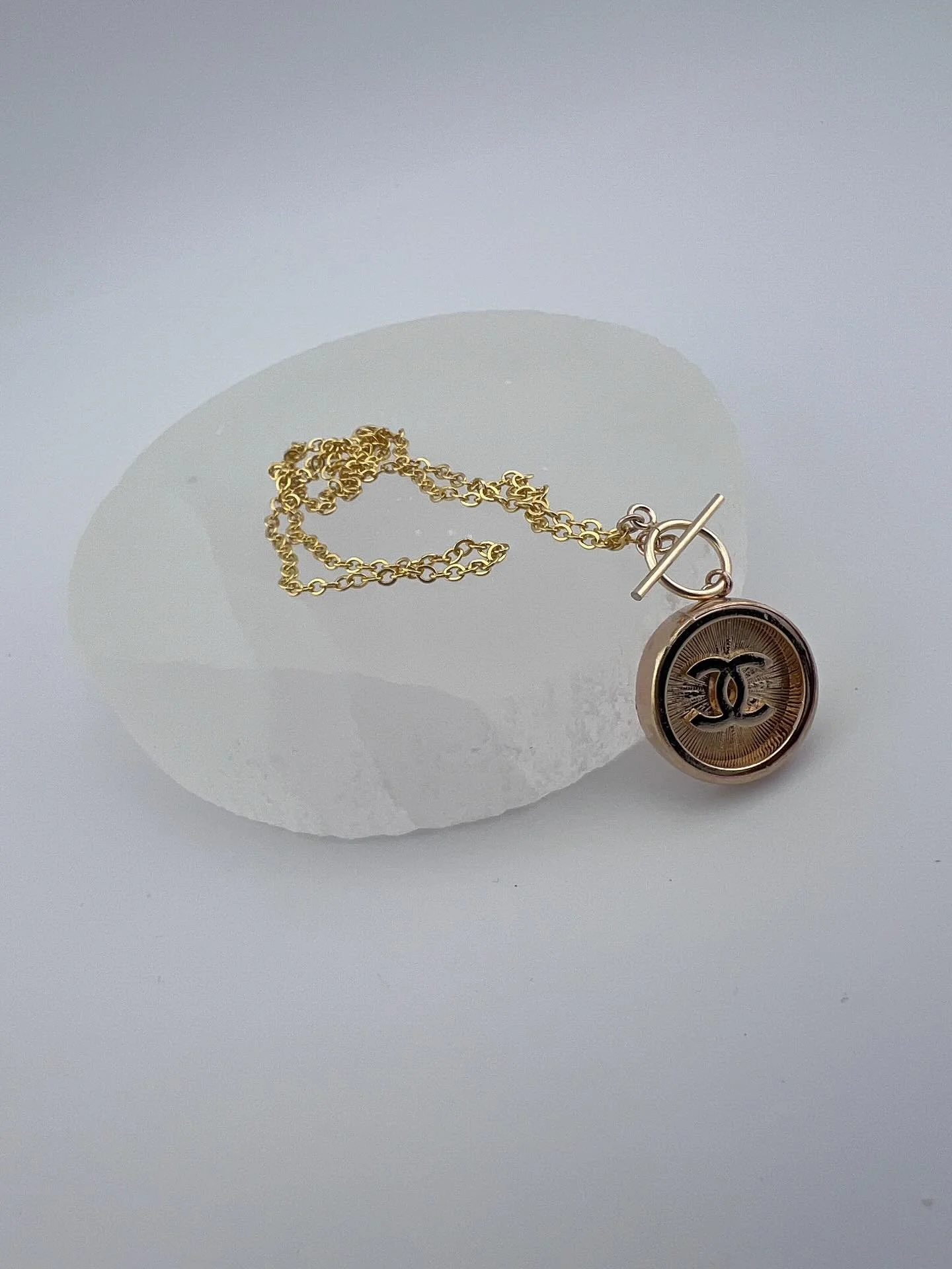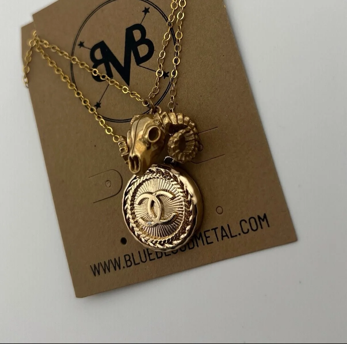 Each piece is made to order, based on the unique characteristics of the button and the wearer. If you have a button, perhaps from a civil war jacket, a family members favorite dress, etc we can also make a custom piece for you to wear and hold with you forever. Full refunds and exchanges up to 14 days from delivery date. *Blue Blood Metal is not affiliated with luxury brands. These pieces are handcrafted, repurposed designer buttons.