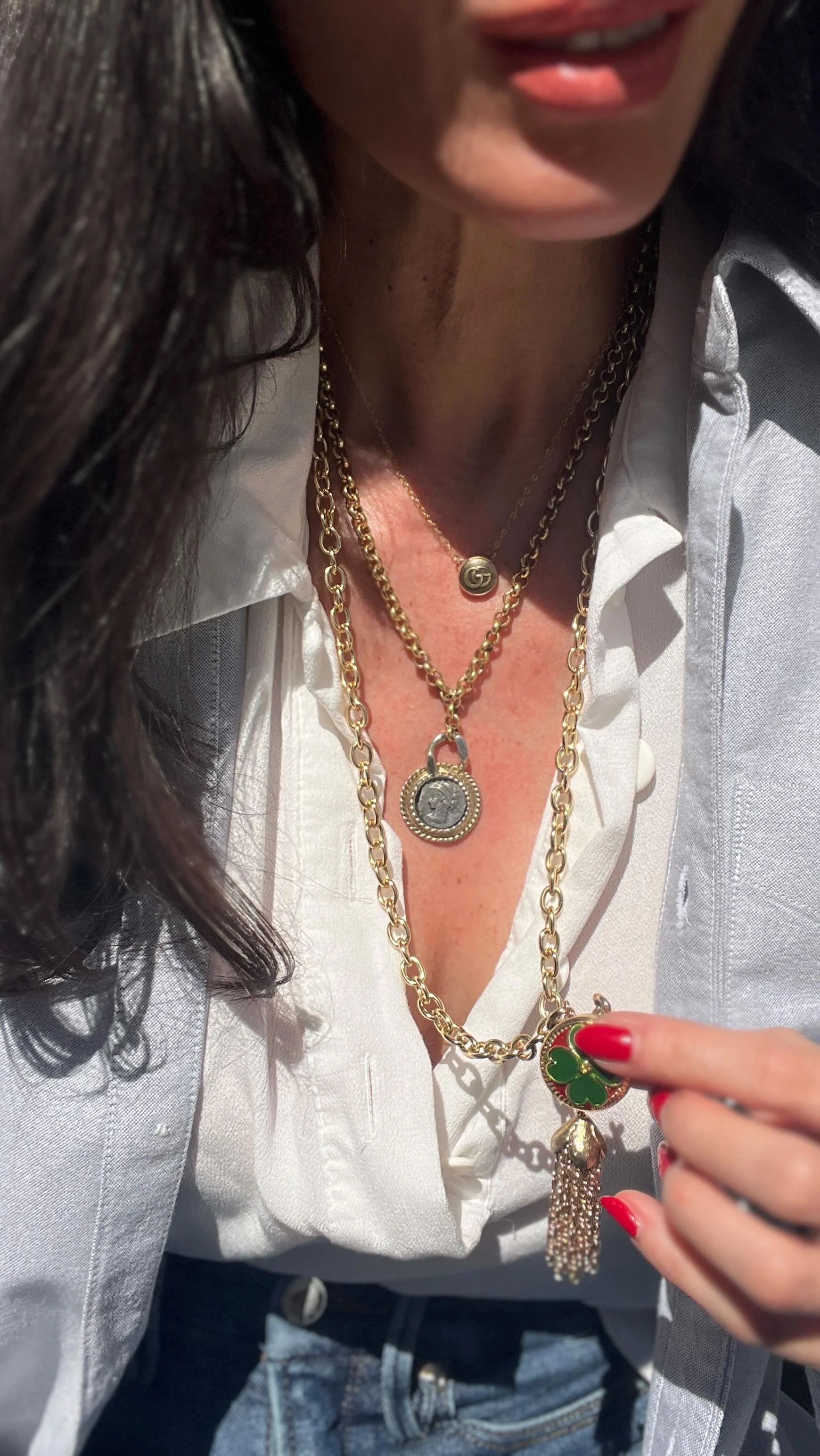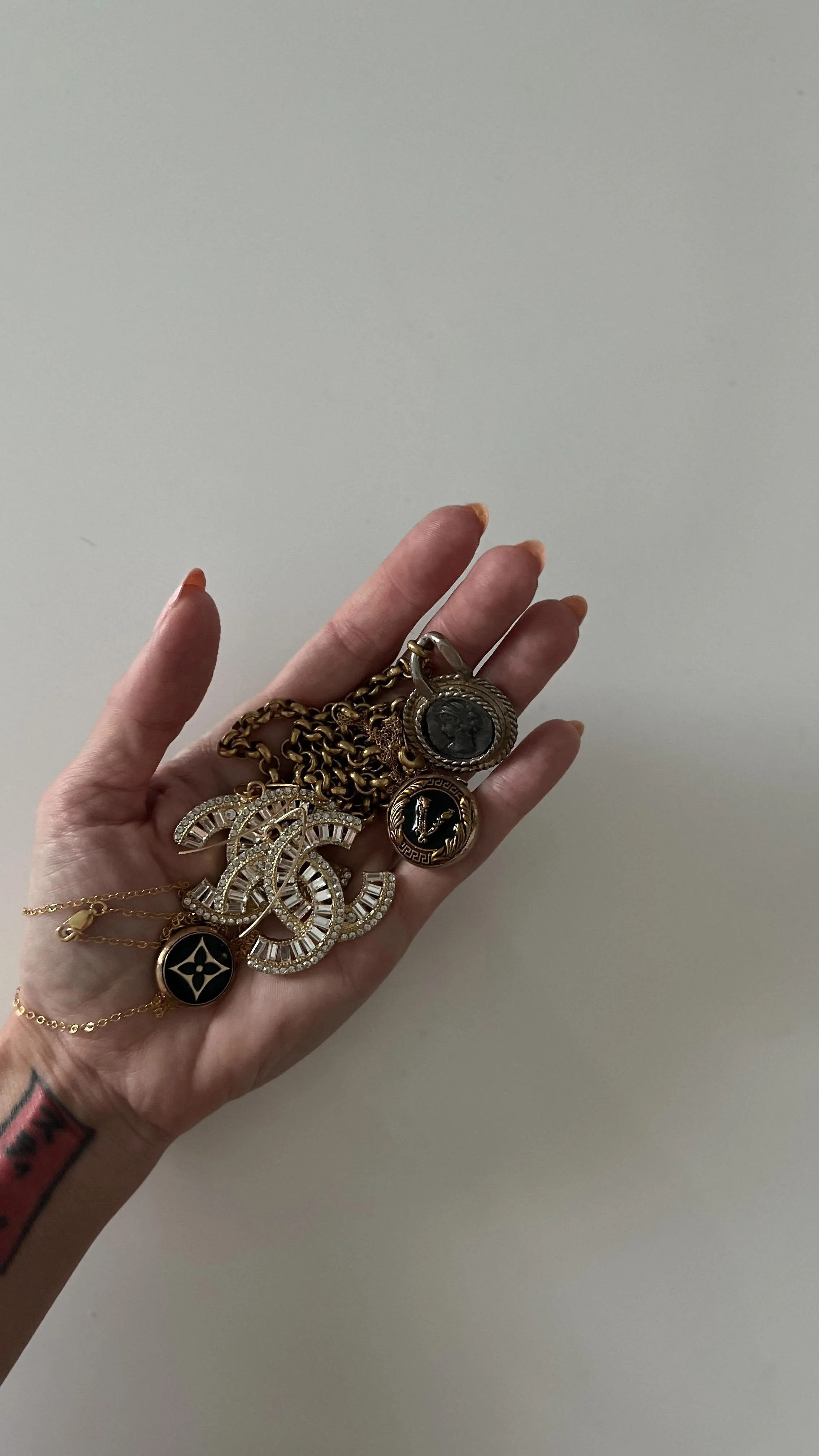 Each piece is made to order, based on the unique characteristics of the button and the wearer. If you have a button, perhaps from a civil war jacket, a family members favorite dress, etc we can also make a custom piece for you to wear and hold with you forever. Full refunds and exchanges up to 14 days from delivery date. *Blue Blood Metal is not affiliated with luxury brands. These pieces are handcrafted, repurposed designer buttons.